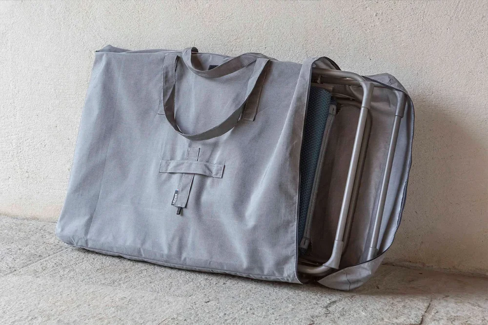 Cestovní pouzdro se dvěma uchy slouží k přepravě i uložní relaxačních křesel. Při delším uložení doporučujeme nechat rozepnutý zip, aby se zajistilo proudění vzduchu.